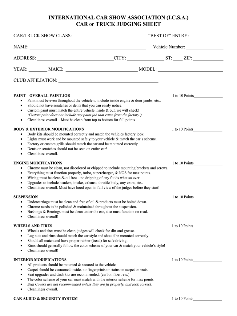 Free Printable Car Show Judging Sheet Fill Out Sign Online DocHub