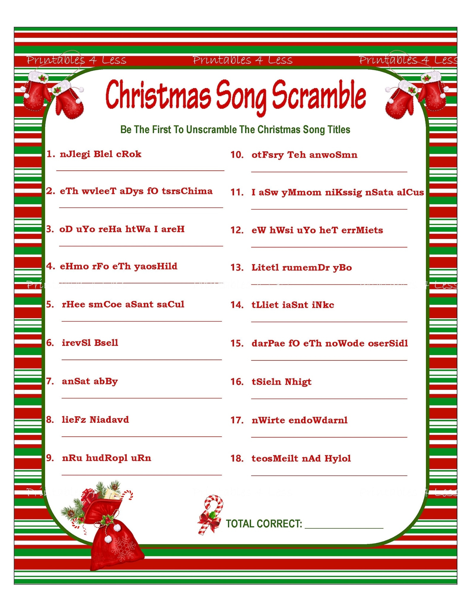 Christmas Scramble Christmas Song Game Printable Christmas Etsy