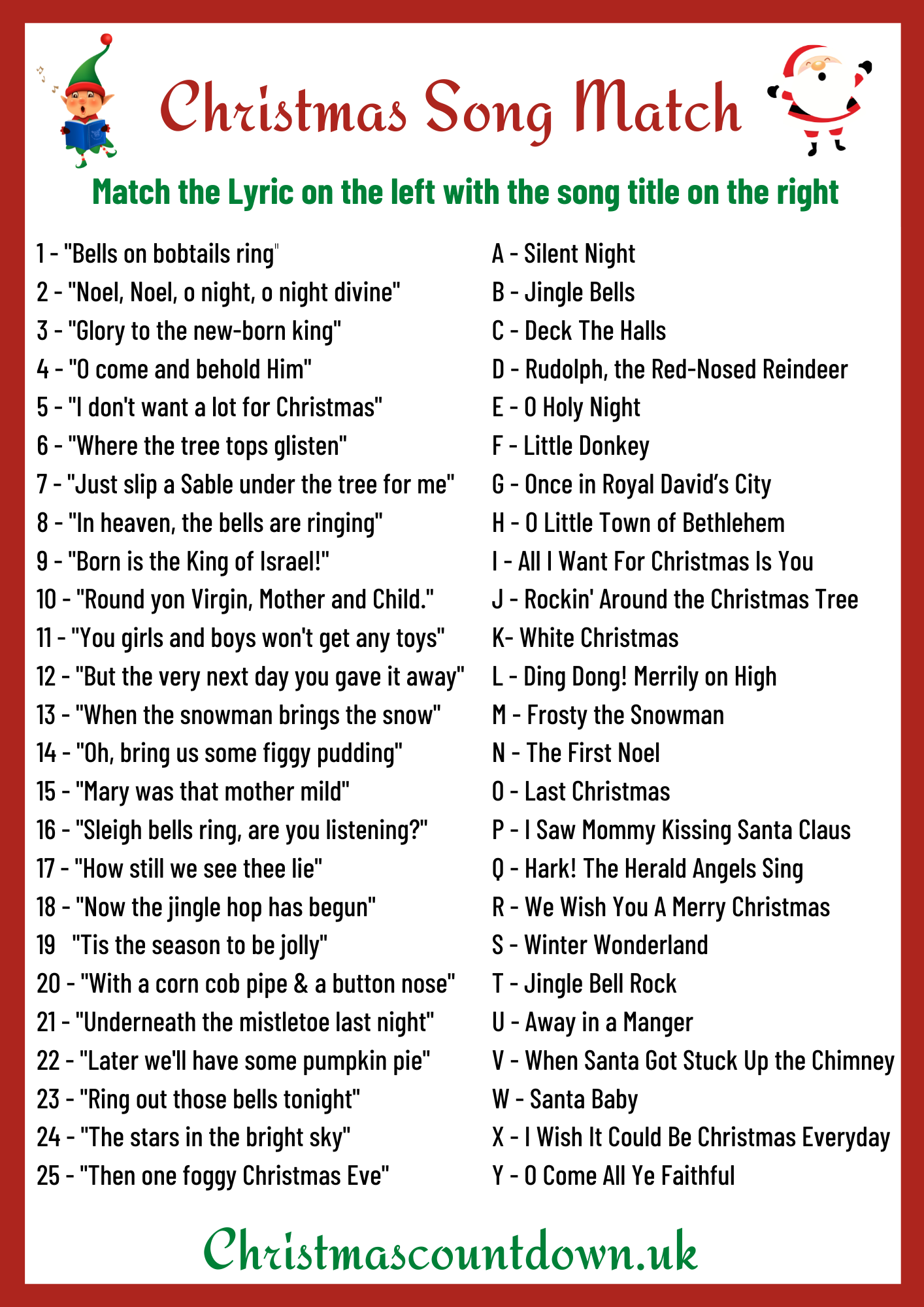 Christmas Song Matching Game Free Printable Christmas Song Games
