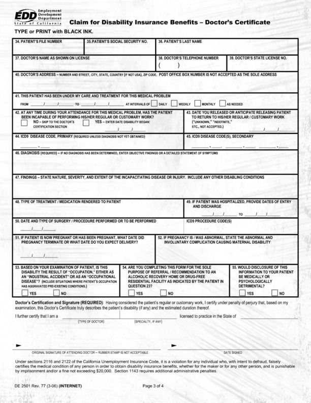 Form De 2501 Claim For Disability Insurance Di Benefits Hipaa