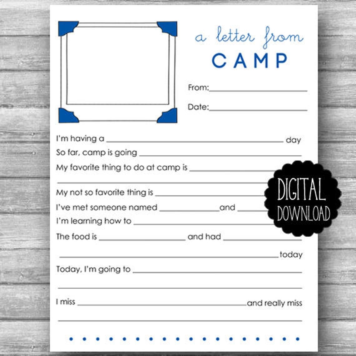 Fill In The Blank Camp Letter Printable Letter Camp Letter Etsy