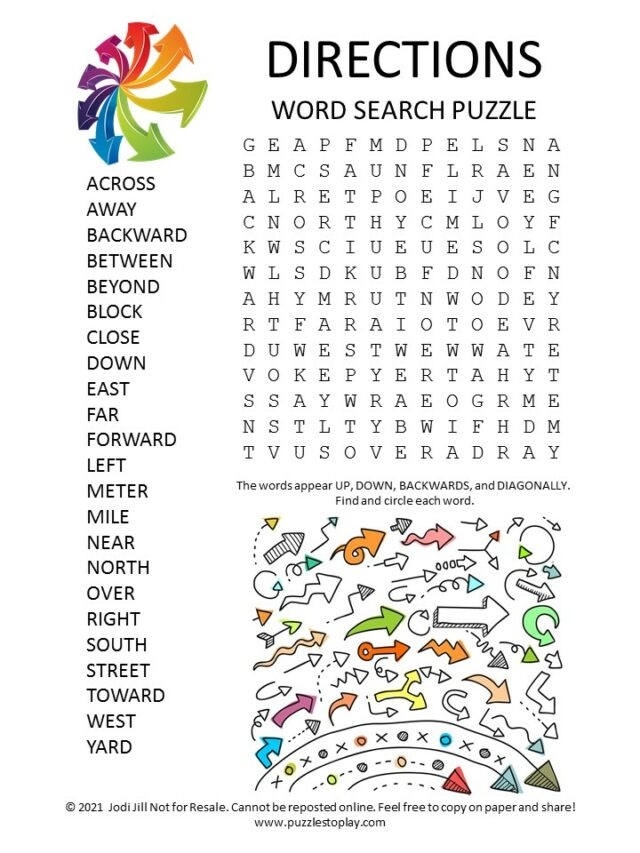 Directions Word Search Puzzle Puzzles To Play