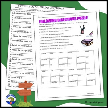 Following Directions Puzzles Beginning Of Year Activity W Distance