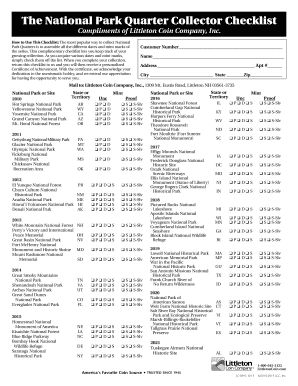 National Park Quarter Checklist Pdf Fill And Sign Printable Template