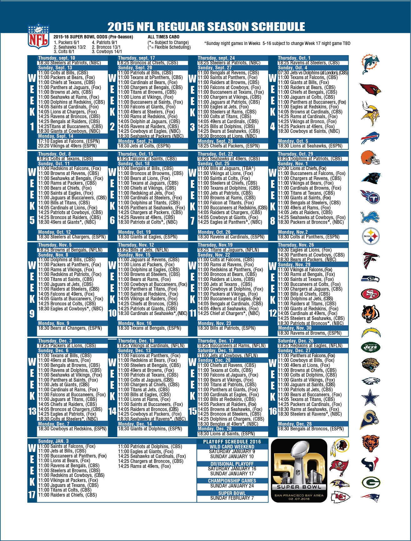 Printable Nfl Weekly Schedule 2025