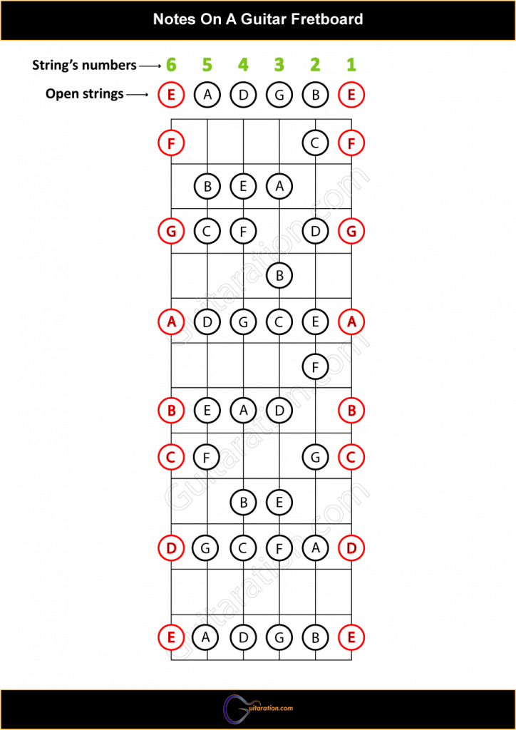 Printable Guitar Fretboard Notes Chart pdf Guvna Guitars