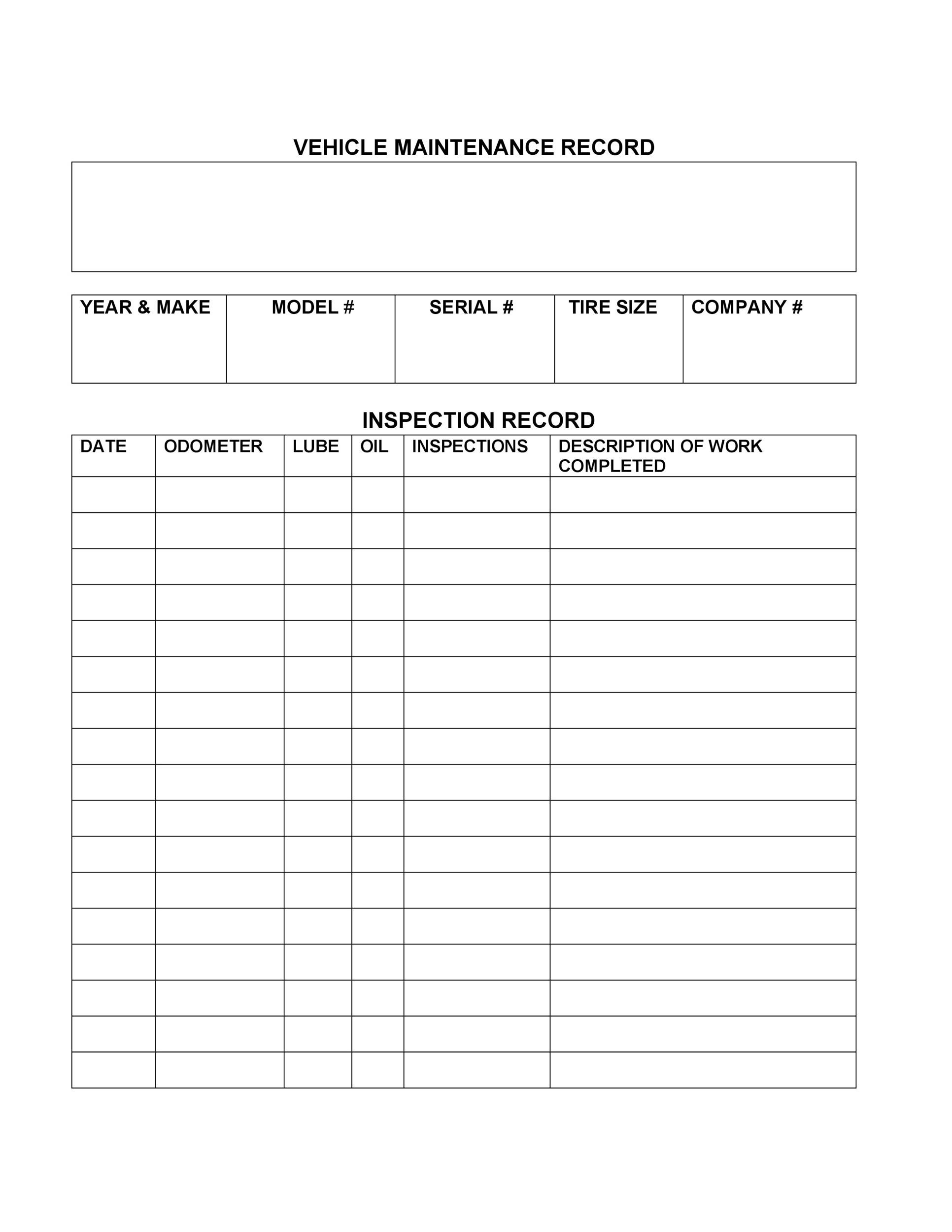 Downloadable Free Printable Vehicle Maintenance Log Sheet