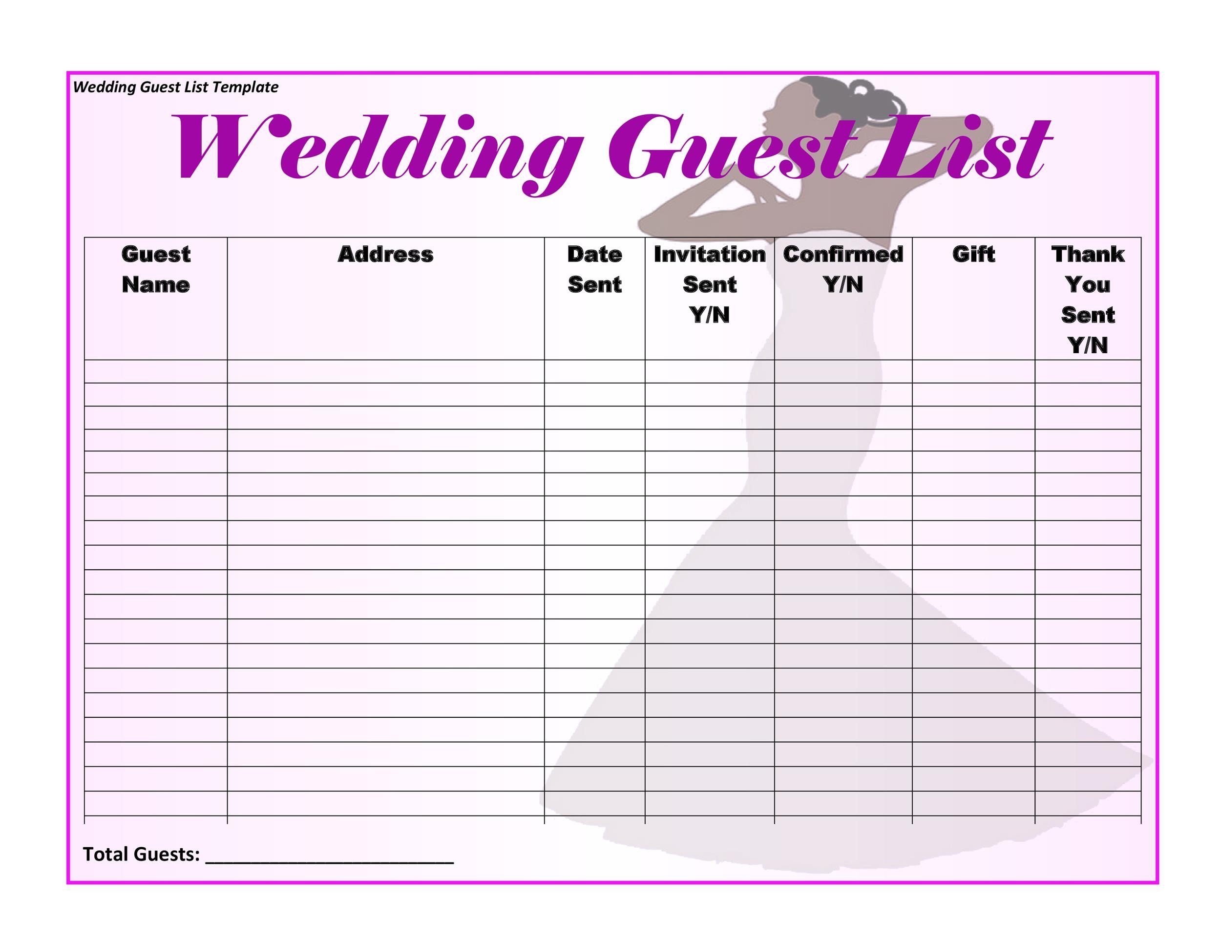 Free Wedding Guest List Template Printable Templates Your Go To