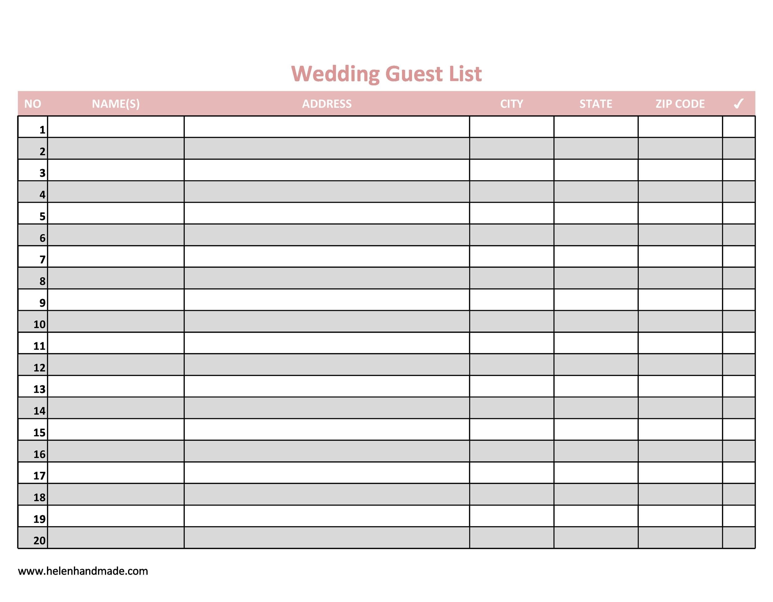 Wedding Guest List Template Download Printable PDF Templateroller