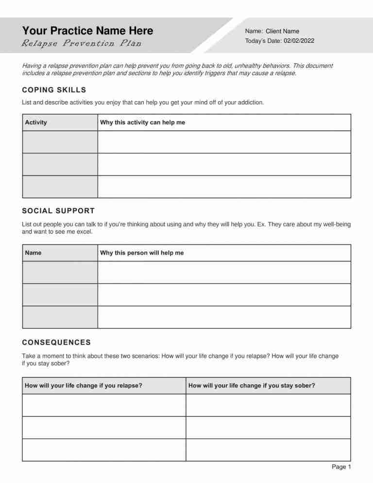 In conclusion, printable worksheets on relapse prevention can be valuable resources for those in recovery. By utilizing these tools, individuals can enhance their self-awareness, build resilience, and stay focused on their journey towards a healthier, substance-free life. Remember, recovery is a process, and these worksheets are here to support you every step of the way.