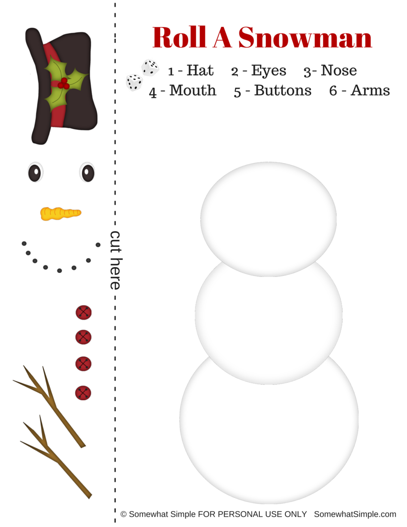Roll A Snowman Dice Game Free Printable Printable Word Searches