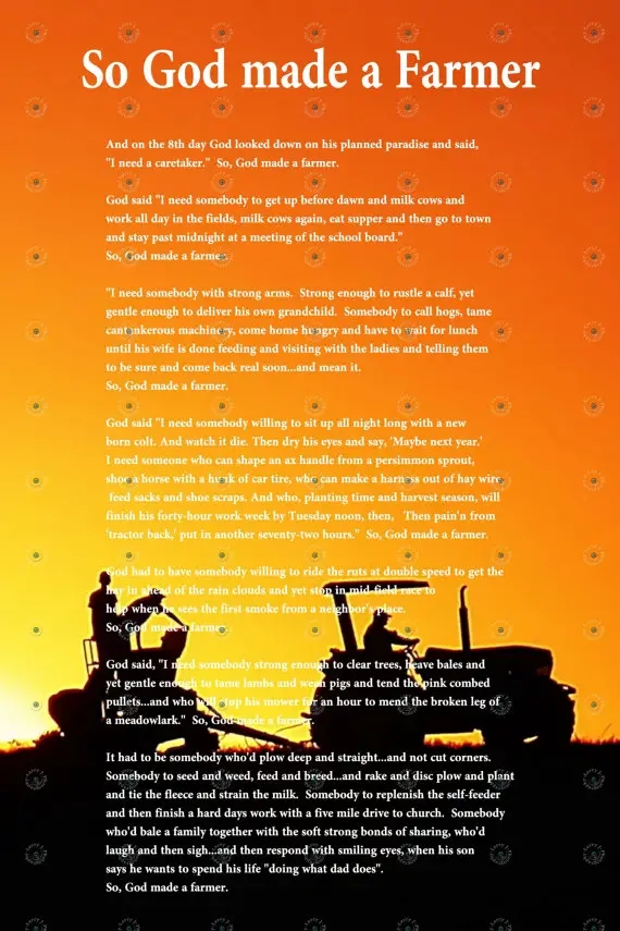 The “So God Made A Farmer” poem was originally delivered by legendary broadcaster Paul Harvey in 1978 at the National FFA Convention. It paints a vivid picture of the qualities that make farmers so special and essential to our society.