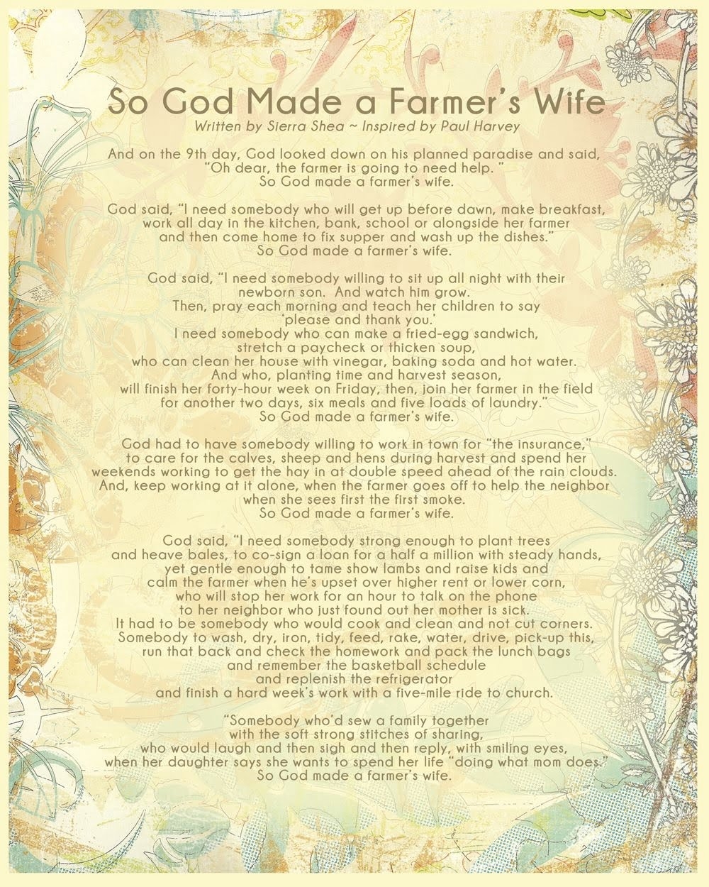 Printable So God Made A Farmer Poem Words i Need Somebody With Arms