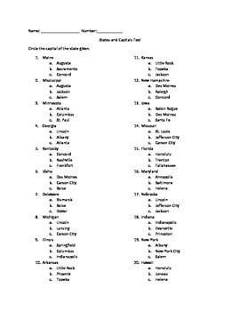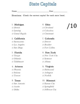 State Capitals 10 Questions Multiple Choice By Curt 39 s Journey