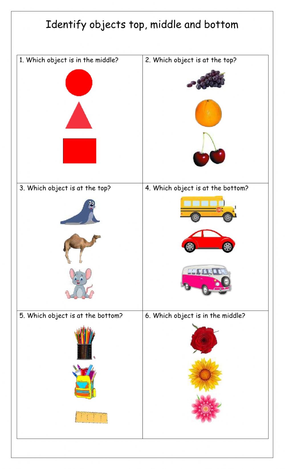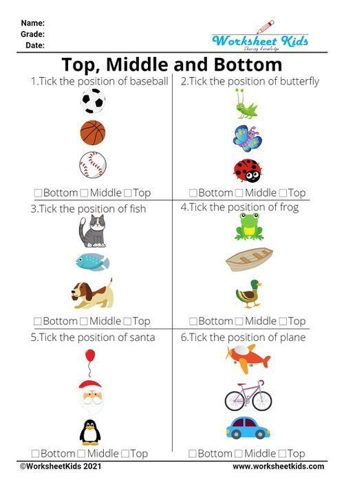Top Middle Bottom Printable Worksheets