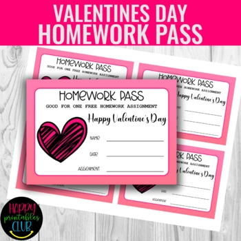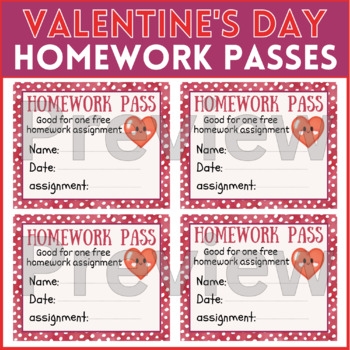 Valentine Homework Pass Valentines Day Homework Pass Printable