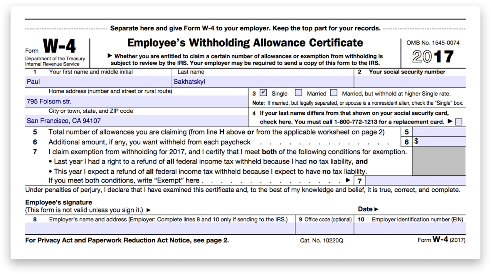 W4 Form Printable For Employee To Fill Out
